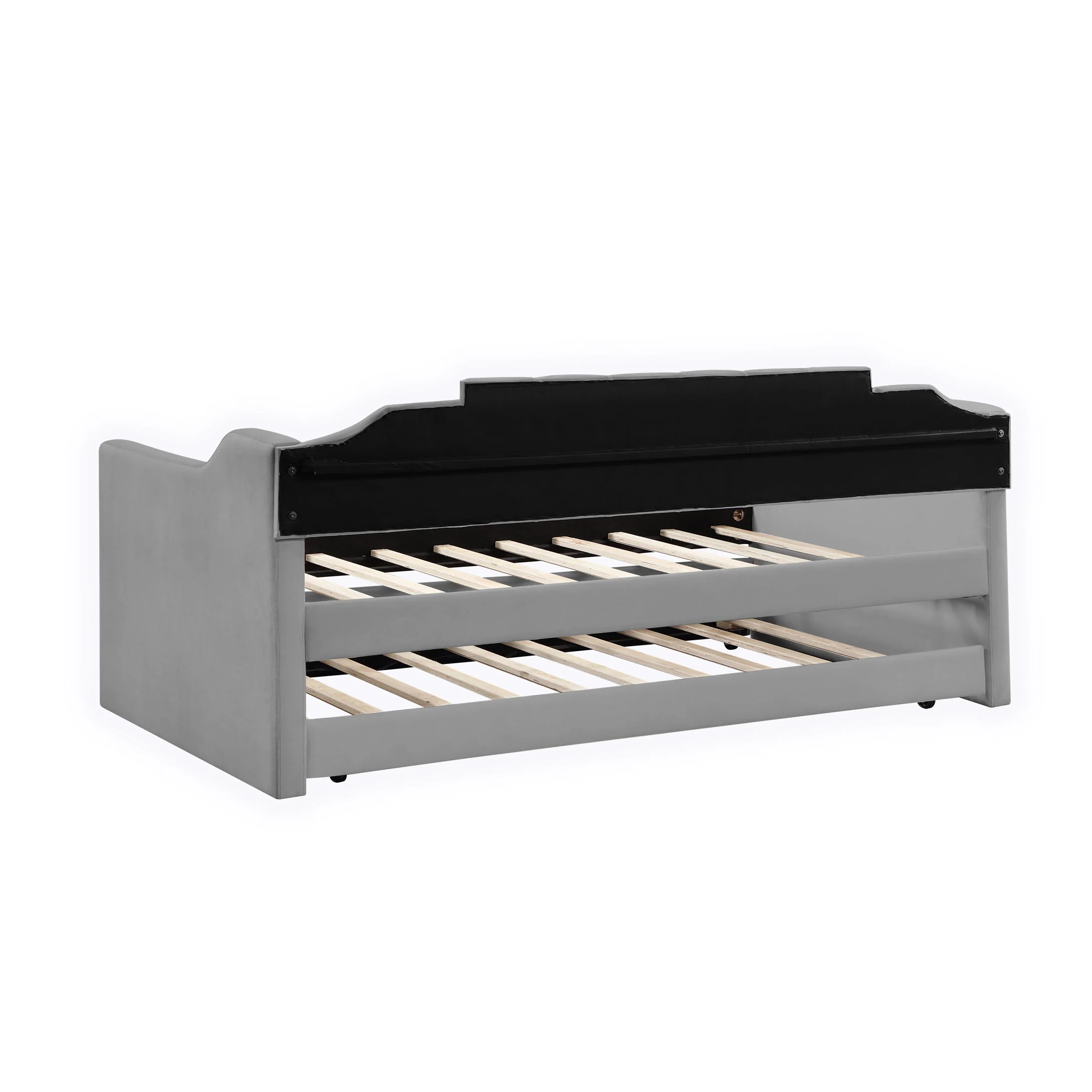 Velvet Daybed With Trundle Upholstered Tufted Sofa Bed, Both Twin Size, Grey Beige Solid Wood